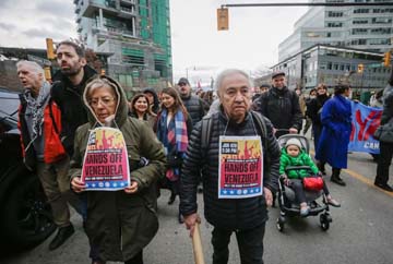 香港文匯報訊 (特約記者 成小智 多倫多報道)加拿大首都渥太華周日(1月4日)有數十人聚集在距離國會大樓不遠的美國大使館前示威,譴責美國總統特朗普干預委內瑞拉內政,強行控制總統馬杜羅夫婦。他們譴責美國把拉丁美洲「當作後院」,可以任意前去攫取資源,同時要求加拿大政府加緊防禦美國,阻止加拿大成為下一個襲擊目標。