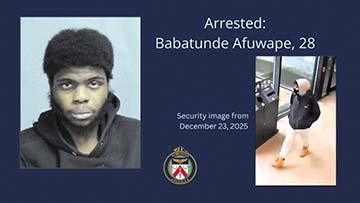去年12月23日下午发生在Highland Creek Trail與Old Kingston Road多倫多大學士嘉堡校區附近的一起緻命槍擊案有了最新進展。多倫多警方1月7日証實,一名28歲男子Babatunde Afuwape已被控一級謀殺,並表示案件初步判斷爲隨機暴力行爲,受害的20歲學生Shivank Avasthi與嫌疑人並不相識。多倫多警方偵探警司Stacey McCabe表示,在槍擊案中,嫌疑人在警員到達前已逃離現場,他正因槍械相關罪行處於假釋期,作案動機仍在調查中。多倫多警方已公佈嫌疑人的照片,並呼籲公衆提供更多線索,同時表示相信可能還有更多人在案发當天曾在槍擊发生的步道或校園內見過嫌疑人。