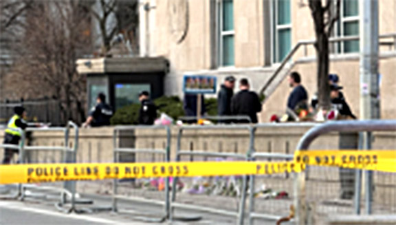 (香港文匯報特約記者成小智 多倫多報道) 加拿大接連發生針對性槍擊事件,位於多倫多的美國領事館3月10日凌晨遭連環槍擊,但沒有人受傷,警方正追緝兩名在逃槍手。警方把這宗涉及美國的槍擊案列為「國家安全事件」,暫沒有跡象顯示加拿大公共安全受威脅。警方表示,現在判斷襲擊動機是言之過早,但將調查這是否與恐怖主義襲擊、美國和以色列聯合空襲伊朗,以及多倫多先前發生的3座猶太會堂襲擊事件有關。在槍擊事件中,美國領事館的大門遭到損壞,大樓外發現約10枚彈殼。總理卡尼形容這次槍擊是「令人髮指的暴力行為和恐嚇企圖」,承諾加拿大皇家騎警和聯邦機構將投入一切必要資源進行調查,確保將這些暴力行為的違法者繩之於法。他指出,聯邦政府的事件回應小組本周末將召開會議,審查加拿大「威脅情勢」的潛在變化,並討論如何改善國內安全。兩男手槍射向建築大門安大略省皇家騎警和多倫多警察局表示,警方於10日凌晨約5時30分接獲報案,得悉有人向美國領事館開槍。多倫多警察局副局長巴雷多表示,槍擊事件可能早在凌晨4時29分發生,只是當時未被發覺。警方初步調查後表示,一輛白色本田CR-V汽車停在領事館前,兩名男子隨後下車,用手槍向建築物連開多槍,然後上車向南面駛去。警方抵達現場後,發現美國領事館大門損壞,大樓外留下約10枚彈殼。據報,領事館內當時有人在內,但由於建築結構非常堅固和嚴密,裏面的人很可能沒有聽到槍聲。當天上午,數名警員在領事館周圍巡邏,撿拾散落在行人路和馬路上的彈殼。美駐奧斯陸大使館數天前爆炸加拿大警方已與包括聯邦調查局在內的美政府部門取得聯繫,並提高美國和以色列駐加拿大使領館的保安級別,務求盡快緩和國內緊張局勢。美國駐加拿大大使霍克斯特拉表示,美加兩國保持密切聯繫合力進行調查。這是美國駐中東以外使領館在3天內發生的第2宗遭蓄意針對事件,美國駐挪威奧斯陸大使館入口曾在8日發生爆炸。卡尼同日表示,加拿大沒有參與美國和以色列對伊朗的軍事行動,且絕不會參與。卡尼出席國會質詢時強調,加拿大的立場明確,支持遏制伊朗核計劃及打擊恐怖主義輸出,「但加拿大目前沒有、將來也絕不會參與美以對伊的進攻性行動」。卡尼還與法國總統馬克龍通話,討論中東局勢,兩國領導人表示必須確保霍爾木茲海峽的安全通行。卡尼此前曾表態稱,他支持通過空襲阻止伊朗獲取核武,但他隨後轉變立場,對國際秩序的「失靈」表示遺憾,特別呼籲包括美國和以色列在內的各方遵守國際規則。