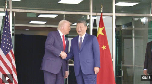 当地时间10月30日中午,国家主席习近平在韩国釜山同美国总统特朗普举行会晤。中美元首会晤结束后,特朗普总统送习近平主席上车。