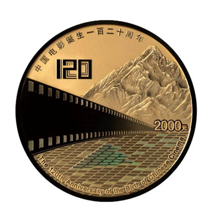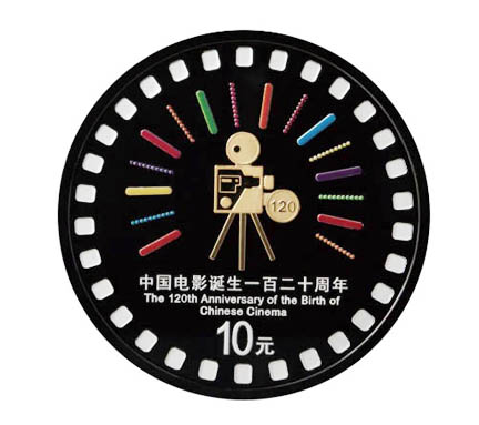 Chinese Cinema”英文字样及面额。3克圆形金质纪念币背面图案由胶片放映盘装饰造型、数字“120”等元素组合设计而成,并刊“中国电影诞生一百二十周年”中文字样、“The 120th Anniversary of the Birth of Chinese Cinema”英文字样及面额。