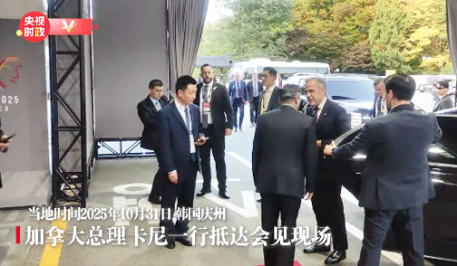 当地时间10月31日下午,国家主席习近平在韩国庆州出席亚太经合组织第三十二次领导人非正式会议期间会见加拿大总理卡尼。