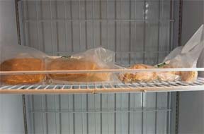 在广州越秀区淘金路一家餐厅门外一台白色冰箱静静伫立透过玻璃门可以看到里面整齐摆放着包装完好的炸鸡、鸡块等食物