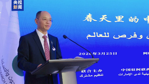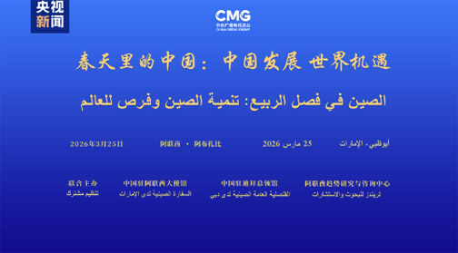 当地时间3月25日,由中国中央广播电视总台、中国驻阿联酋大使馆、中国驻迪拜总领馆、阿联酋趋势研究与咨询中心联合主办的“春天里的中国:中国发展 世界机遇”全球对话会阿联酋专场在阿布扎比举行。中宣部副部长、中央广播电视总台台长慎海雄作视频致辞。中国驻阿联酋大使曾继新、中国驻迪拜总领事欧渤芊、阿联酋趋势研究与咨询中心主席穆罕默德·阿里出席活动并致辞。中阿两国工商界、学界、媒体界等50余名嘉宾参加活动。慎海雄表示,今年的中国两会表决通过了“十五五”规划纲要等重要文件,这是中国高质量发展的施工图,也为世界提供了新的“机遇清单”。总台CGTN开展的一项全球民调显示:超过八成受访者称赞“中国经济高质量发展的理念引领了世界经济的发展趋势”,为当今动荡的世界注入更多的宝贵稳定性和正能量。世界好,中国才会好;中国好,世界会更好。习近平主席在中国两会期间强调,要扩大高水平对外开放,广泛开拓全球市场,更好联通国际循环。这再次彰显了“中国开放的大门只会越开越大”的坚定决心。今年以来,中国新质生产力发展如火如荼。从中国大模型全球“圈粉”,到总台马年春晚智能机器人耍拳弄棒、组团亮相,再到“电影+旅游”“电影+美食”等电影经济激活消费市场……中国这片“确定性的绿洲”,正不断孕育出新的发展机遇。中央广播电视总台愿发挥国际一流融合传播优势、科技创新优势、媒体资源优势,推动中国式现代化成果更好惠及世界。让我们携手共促世界和平与发展,为推动构建人类命运共同体贡献力量。曾继新表示,2026年是中国“十五五”开局之年,也是全面建设社会主义现代化国家迈入新阶段的关键之年。今年两会期间,中国持续释放高水平对外开放的明确信号,推动高质量共建“一带一路”走深走实,以开放包容纾解发展之困,以互利共赢汇聚合作之力。“十五五”时期,中国将继续倡导平等有序的世界多极化与普惠包容的经济全球化,与世界各国共享发展机遇,让世界在动荡变革中听到更多来自中国的“确定性声音”。近年来,在习近平主席和穆罕默德总统的战略引领下,中阿两国关系迈入历史最好时期,树立了中国与阿拉伯国家合作以及南南合作的新典范。面向未来,中国愿与阿联酋不断丰富中阿全面战略伙伴关系的内涵,更好造福两国人民,为地区和平发展与构建中阿命运共同体注入源源不断的正能量。