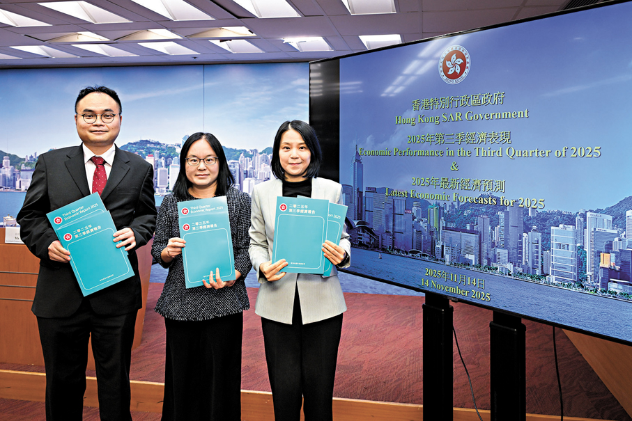 香港文匯報訊(記者 莊程敏)署理政府經濟顧問林幗瑛昨日指出,本地消費市道續見恢復,私人消費開支在第三季增速輕微加快,按年實質進一步上升2.1%。隨着經濟擴張及住宅物業市場回穩,整體投資開支的按年實質升幅加快至4.3%。雖然本地消費逐步回穩,加上整體經濟增長,有助職位創造,預期失業率短期內不會大幅下降,但情況有望逐步改善。風險較集中在零售及飲食業勞工市場在第三季放緩。經季節性調整的失業率由上一季的3.5%上升至第三季的3.9%。就業不足率亦上升。就業收入繼續錄得按年增長。林幗瑛補充指,現時失業風險較集中在零售及飲食業,即使市道改善,企業亦未必即時大量增聘人手。資產市場方面,本地股票市場第三季呈現強勁升勢,恒指在9月中飆升至四年高位,季末收報26,856 點,較6月底高11.6%。踏入第四季以來,本地股市交投保持暢旺,近日恒指的水平與9月底時相若。樓市在第三季進一步靠穩住宅物業市場在第三季進一步靠穩。隨着季內美國啟動減息及本地金融市場表現強勁,市場氣氛大致上更趨正面。整體住宅售價在第三季內出現 2%的較明顯升幅。隨着近期住宅售價進一步靠穩,置業負擔指數在第三季微升,但與長期平均數相若。交投量方面,第三季送交土地註冊處註冊的住宅物業買賣合約總數維持在16,700份的高水平,與上一季相比幾無變動,但較一年前的低水平高 63%。整體住宅租金維持強韌,在第三季上升2%,受惠於夏季期間季節性租賃需求上升進一步拉動。非住宅物業市場在第三季維持疲弱。所有主要市場環節的售價和租金仍然偏軟,交投活動則表現不一。