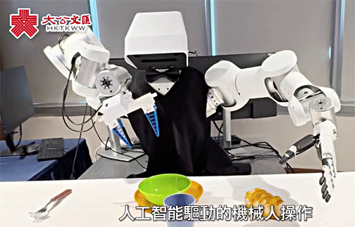 (大公文匯全媒體報道)香港中文大學(中大)InnoHK香港物流機械人研究中心推出首個香港自主研發的人工智能機械人平台,今日(13日)舉行發布會,創新科技及工業局局長孫東,特區創新科技署署長李國彬,香港物流機械人研究中心董事會主席、中大副校長(研究)岑美霞,中大工程學院院長曾漢奇,香港物流機械人研究中心總監、中大工程學院卓敏機械與自動化工程學教授劉雲輝等出席發布會。孫東在致辭時表示,HKCLR一直積極探索具身智能與人形機械人的應用,今天非常高興可以見證中心推出香港首個自主研發、基於先進人工智能模型的四足機械人及人形雙臂操控平台。這次的技術和產品發布與特區政府重點發展人工智能與機械人產業的策略緊密契合,展現了政、產、學、研高效合作的成果。孫東續指:「展望未來,我期望HKCLR及其他InnoHK研發中心繼續發揮香港科研優勢,推動更多突破性技術落地應用。特區政府會繼續多管齊下為大家創造有利的創科條件,與大家一同實現建設香港成為國際創新科技中心的願景。」岑美霞致辭時表示:「自成立以來,中心始終專注於人工智能和機械人的技術,致力於推動國際戰略前沿及產業創新,助力香港鞏固成作為國際創新技術中心的地位。中心的研究研究涵蓋機械人感知,人工智能驅動的機械人操作,人機協作及無人駕駛的物理系統四大關鍵領域。我們非常重視裝研究的成果轉化為實際的應用,以提升業界技術的水平,促進經濟發展並回饋社會。」香港首個自主研發的人工智能四足機械人與人形雙臂平台據了解,該平台由LY 1四足機械人和視覺語言模型(VLM)驅動的雙臂具身人工智能操作系統構成,融合高靈活度與智能操作能力,展現先進的感知、決策與硬件執行技術。該平台可廣泛應用於物流、零售、自動化工業等多個領域,充分體現香港在機械人與具身智能技術領域的創新實力,為智慧城市發展注入動力,並為本地創新科技發展開啟新篇章。LY 1四足機械人是一款小巧而高效的機械人平台,專為在複雜環境中實現靈活度而設計。其創新的差分驅動系統提升了結構效率和負載能力,並結合強化學習驅動的動作控制與視覺導航算法,使其能夠自主穿越崎嶇及具挑戰性的地形。基於VLM的具身智能雙臂系統則結合多模態感知與視覺語言模型,具備語意理解與環境感知能力,能按實際情況作出反應,可在家庭、工業及物流場景中提供智能輔助。透過語意分類及多機協作,該系統能提升物流與倉儲效率,並在工業操作中實現靈活搬運、精密裝配及人機協作,有助推動建設智慧城市。這兩個系統結合統一的平台,有助提升倉儲及零售環境的營運效率。雙臂系統可自動執行貨物揀選、分類及運送等任務,減少人力需求並提升處理量,同時支援貨架補貨、訂單履行及在超市與無人零售店中的協作操作。