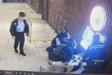。有警員到場開槍制服疑犯,疑犯昏迷送往屯門醫院。網上視頻見到,警員在屯門市廣場內制服該持刀男子。