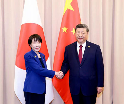 當地時間10月31日下午,國家主席習近平在韓國慶州出席亞太經合組織第三十二次領導人非正式會議期間應約會見日本首相高市早苗。習近平指出,中日兩國一衣帶水,互為重要近鄰,推動中日關係長期健康穩定發展符合兩國人民和國際社會普遍期待。中方願同日方一道,按照中日四個政治文件確立的原則和方向,維護雙邊關係政治基礎,推進戰略互惠關係,致力於構建契合新時代要求的建設性、穩定的中日關係。習近平強調,目前中日關係機遇和挑戰並存。希望日本新內閣樹立正確對華認知,珍視兩國老一輩政治家和各界人士為發展中日關係傾注的心血和努力,堅持中日和平、友好、合作的大方向。一是恪守重要共識。把「全面推進戰略互惠關係」、「互為合作夥伴、互不構成威脅」、「以史為鑒、面向未來」等政治共識落到實處。恪守和履行中日四個政治文件就歷史、台灣等重大原則問題作出的明確規定,確保中日關係根基不受損、不動搖。「村山談話」深刻反省日本侵略歷史並向受害國道歉,這一精神值得弘揚。二是堅持合作共贏。中共二十屆四中全會擘畫了「十五五」中國發展藍圖,中日合作具有廣闊空間。中日可以加強高端製造、數字經濟、綠色發展、財政金融、醫療養老、第三方市場等方面合作,共同維護多邊貿易體制和產業鏈供應鏈穩定暢通。三是促進民心相通。持續開展政府、政黨、立法機構等溝通,深化拓展人文和地方交流,改善國民感情。四是加強多邊協作。秉持睦鄰友好、平等互利、互不干涉內政原則,踐行真正的多邊主義,推動構建亞太共同體。五是妥善管控分歧。着眼大局、求同存異、聚同化異,避免讓矛盾分歧定義兩國關係。