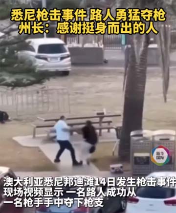 澳大利亞警方15日說,前一天在悉尼邦迪灘發生的槍擊事件已造成包括1名作案嫌疑人在內的16人死亡、40人受傷,兩名嫌疑人為一對父子。新南威爾士州州長克里斯·明斯15日在新聞發布會上對見義勇為人員表達感謝。一段槍擊事件的現場視頻顯示,有一名路人成功從一名槍手手中奪下槍支。澳總理內閣部同日發表聲明說,根據總理阿爾巴尼斯要求,當天澳大利亞全國降半旗,以悼念14日悉尼邦迪灘槍擊事件遇難者。澳總理阿爾巴尼斯14日晚表示,這是一起針對猶太社區的恐怖襲擊,「令人震驚且痛心」。據澳大利亞廣播公司15日報道,澳大利亞聯合反恐小組調查人員說,悉尼邦迪灘槍擊事件兩名嫌疑人曾宣誓效忠「伊斯蘭國」恐怖組織。